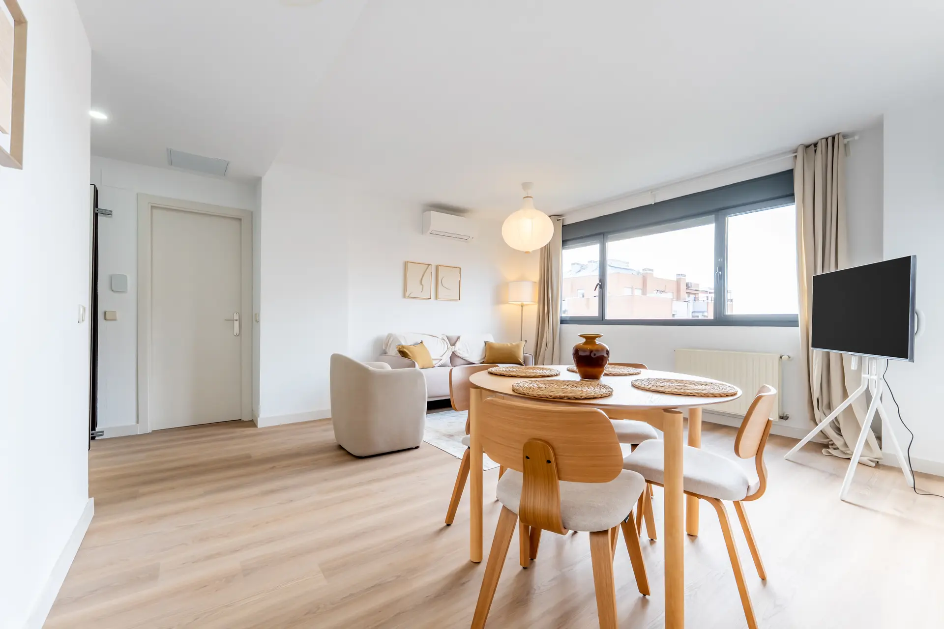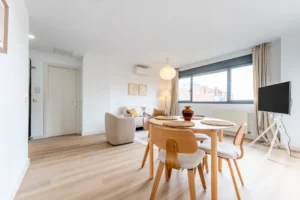 Las viviendas cuentan con una distribución con todas las estancias independientes, destacando el hall de entrada, con comunicación directa entre todas las dependencias, gran salón independiente, cocina con tendedero y dos dormitorios con armarios empotrados. Ideal para parejas y pequeñas familias. Suelos de gres, puertas de roble, ventanas climalit y cocina amueblada.